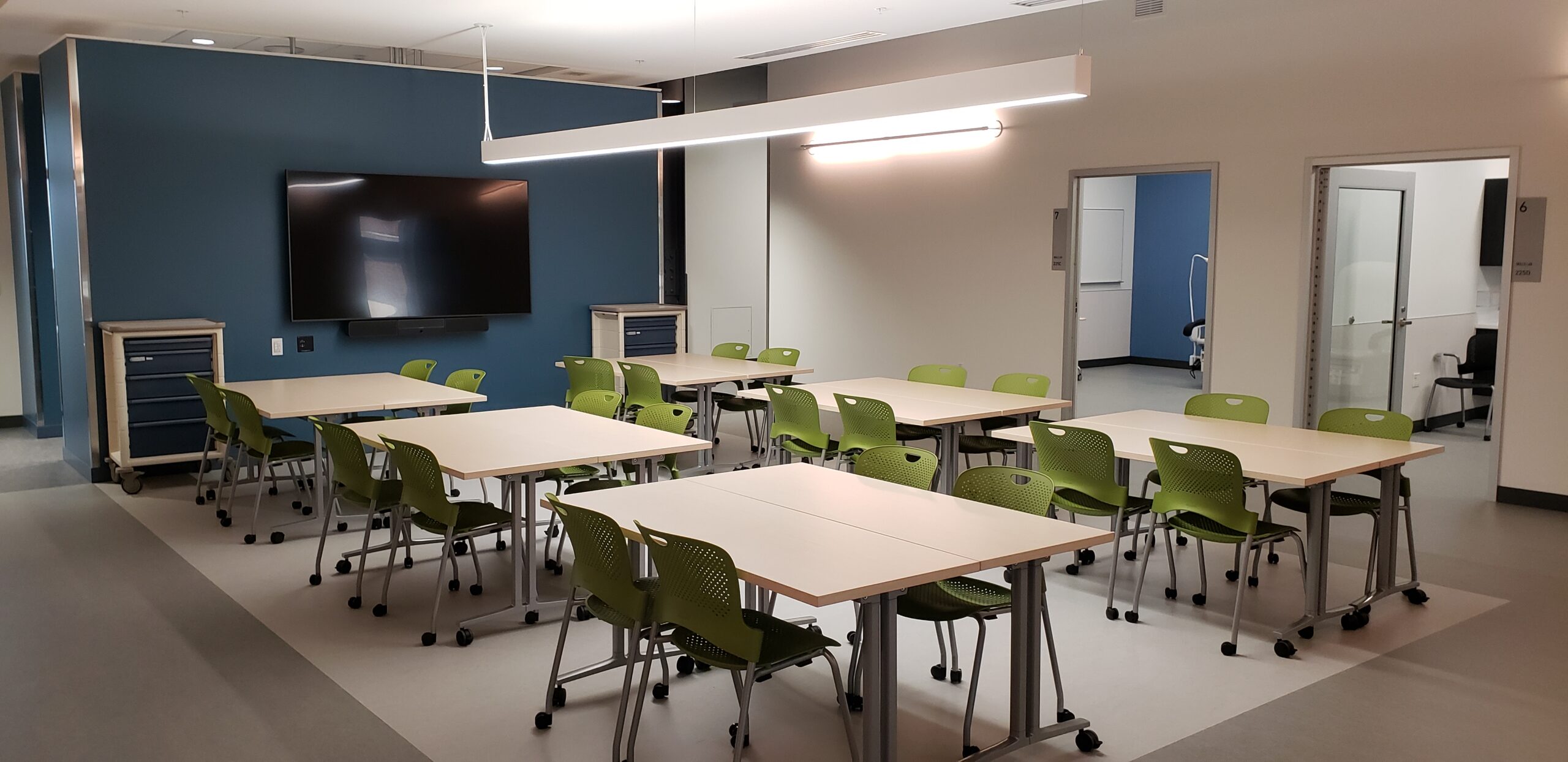 HSEB 225,located in UWS Health Sciences Education Building, is a general assignment Clinical Skills Lab with seating for 80 people.