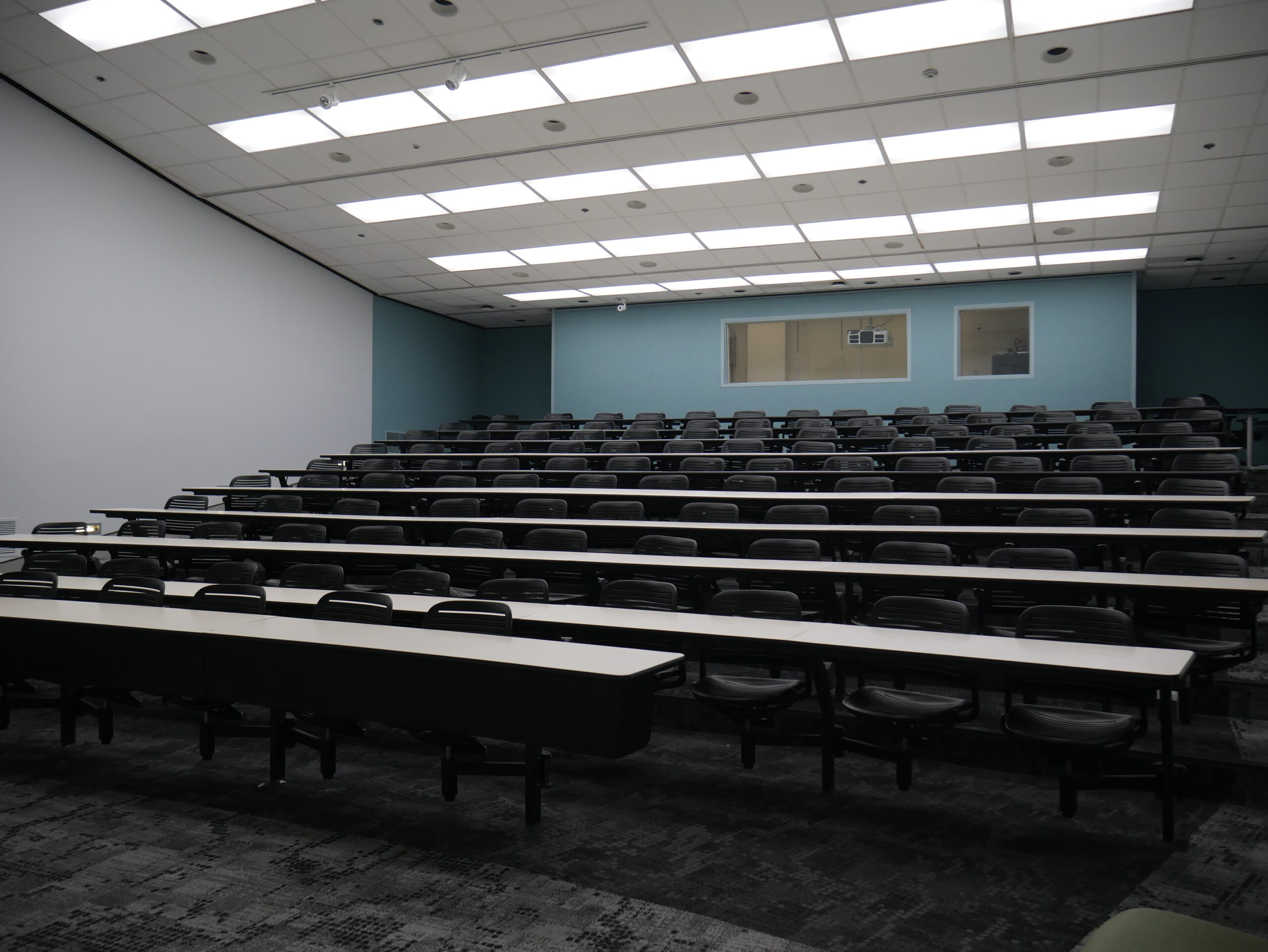 • Stadium seating with fixed desk